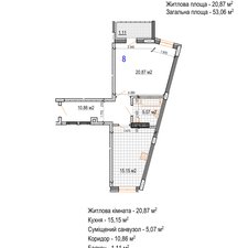 Коментар єОселя- Так. Квартира 57.2кв.м., кухня студія, в кімнаті міні-лоджія, статний коридор, великий санвузол. Квартира на дві сторони.