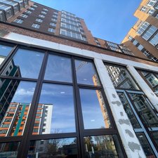 Коментар Приміщення правильноі форми, кутове 68,3м2, в новобудові, високий цоколь, панорамні вікна на 2 сторони