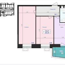 Коментар Широка кімната до 4м, панорамний балкон з кімнати, два коридори, один коридор із нішею, санвузол 5 кв.м.