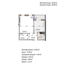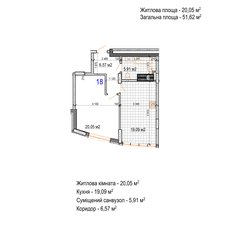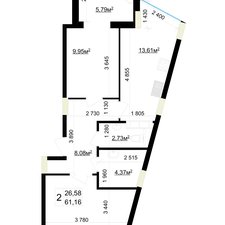 Коментар На дві сторони, площа 61,16м2, роздільний санвузол
