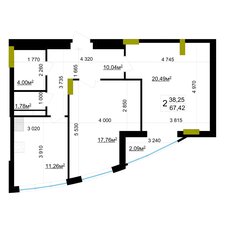 Коментар Площа 65,27 м2, панорамні вікна, роздільний санвузол