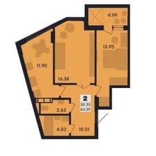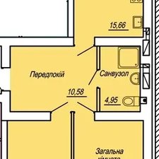 Коментар Площа 63,39 м2, роздільний санвузол, централізоване опалення